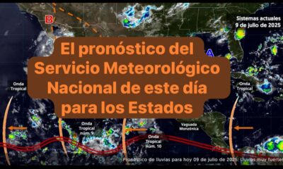 México,9 Julio de2025.-Este día, el monzón mexicano sobre el noroeste del territorio nacional, ocasionará chubascos y lluvias puntuales fuertes en Baja California Sur, Sonora y Chihuahua,...