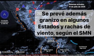 México, 14 julio 2025.-Para hoy, el monzón mexicano en el noroeste del territorio nacional, originará lluvias puntuales intensas en Sinaloa (norte), Durango (oeste, noroeste y norte)...