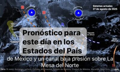 México, 27 agosto 2025.-Para hoy, el monzón mexicano en interacción con una circulación ciclónica en niveles medios de la atmósfera sobre el sur del golfo de...