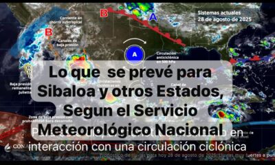 México, 28 agosto 2025.-Este día, el monzón mexicano en interacción con una circulación ciclónica en niveles medios de la atmósfera sobre Baja California Sur, propiciarán lluvias...