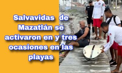 Mazatlán, Sin., 7 oct. 2025.–Elementos de la Secretaría de Seguridad Pública Municipal, asignados al área de playa, lograron poner a salvo a un bañista que fue...