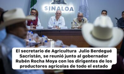 Culiacán, Sin.,3 oct. 2025.- El secretario de Agricultura y Desarrollo Rural, Julio Berdegué Sacristán, se reunió en compañía del gobernador Rubén Rocha Moya con los dirigentes...