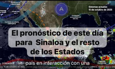 México, 15 oct. 2025.-Para este día, el frente frío número 7 se desplazará sobre el noroeste del país, en interacción una vaguada en altura y la...