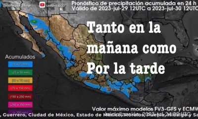 Ciudad de México a 27 de Julio del 2023.-Hoy jueves, el monzón mexicano producirá lluvias puntuales muy fuertes, tormentas eléctricas y posibles granizadas en el sur...