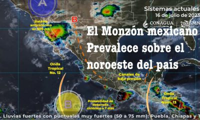 Ciudad de México a 15 de Julio del 2023.- Durante este día, el monzón mexicano continuará sobre el noroeste del país, mientras que la onda tropical...