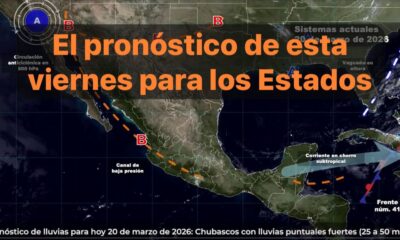 México, 20 marzo 2026.-Este día, canales de baja presión, una vaguada en altura y el ingreso de humedad, generarán lluvias y chubascos con descargas eléctricas y...
