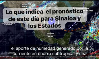 Mazatlán, Sin., 13 oct. 2025.– Los modelos predictivos climáticos para este día lunes señalan que la probabilidad de lluvias para el estado disminuye considerablemente, teniendo precipitaciones...