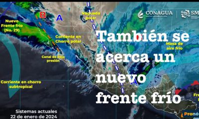 Ciudad de México a 22 de Enero del 2024.-Este día, un frente frío 29 de corta duración, se aproximará al noroeste del territorio nacional, interaccionará con...
