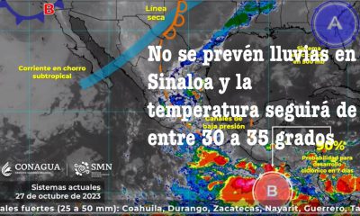 Ciudad de México a 27 de Octubre del 2023.-Para hoy, una línea seca en interacción con la corriente en chorro subtropical, ocasionarán chubascos y lluvias puntuales...