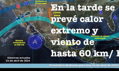 México, 24 de Abril del 2024.-Para hoy, una línea seca sobre Coahuila, en interacción con canales de baja presión sobre el interior de México y con...