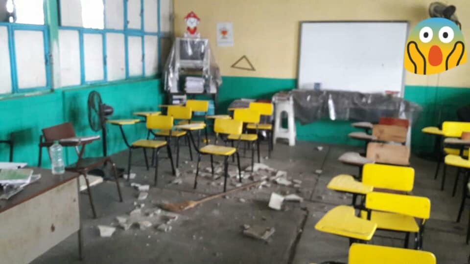 Un problema de este tipo se presentó en la mañana cuando el cemento quedó encima de pupitres, pero por fortuna ningún Niño resultó afectado.