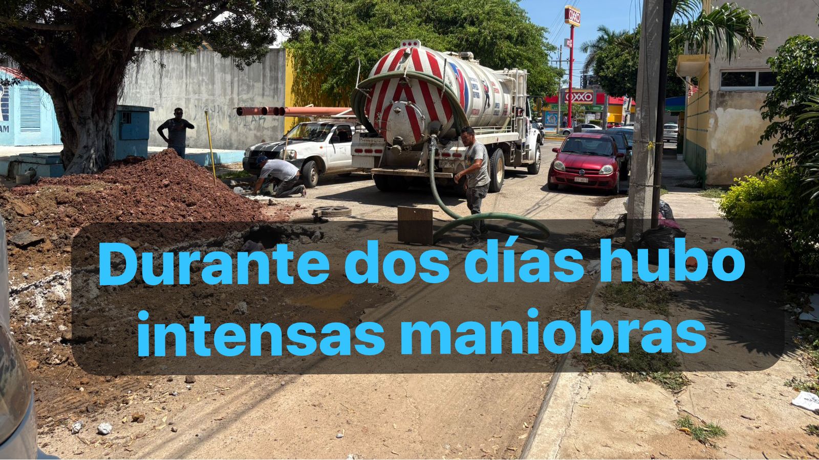 Cabe señalar que para una mejor ejecución de los trabajos, durante las maniobras de excavación y reposición de la red de atarjeas de la calle Zeus, se contó con el apoyo adicional de los camiones hidroneumáticos, evitando con ello el derrame de aguas residuales hacia la calle y preservando la salud pública.