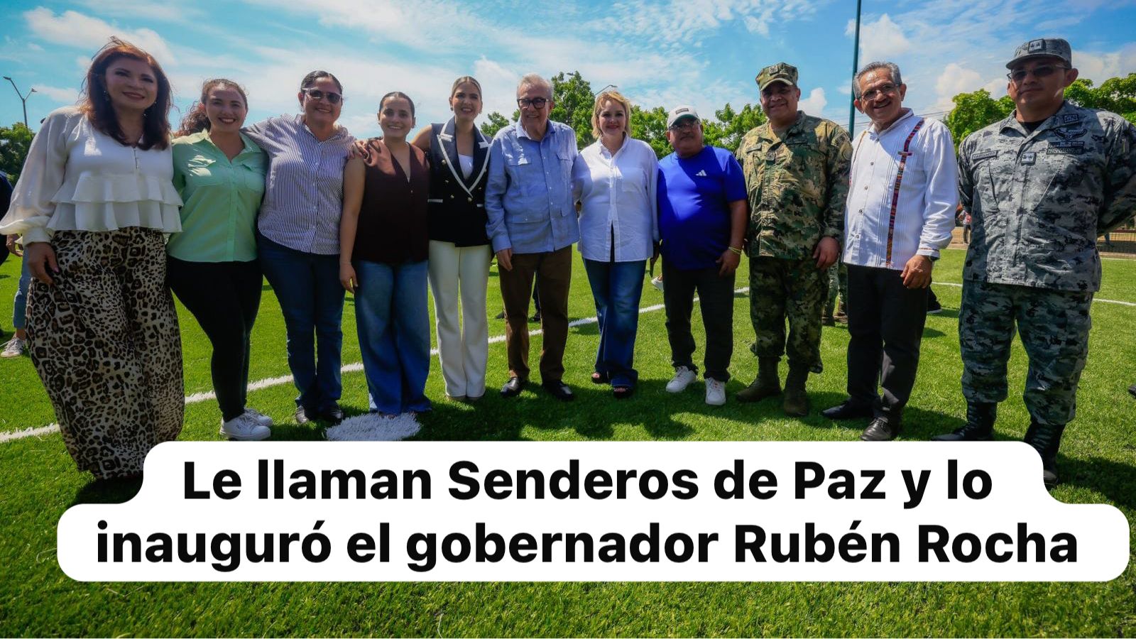 Mazatlán, Sin.,4 sept.2025.- Acompañado por altos mandos militares y de la Guardia Nacional, el gobernador Rubén Rocha Moya inauguró en la colonia Santa Fe, el primer parque denominado Senderos de Paz, que es un espacio recuperado del abandono y que servirá a partir de ahora para la sana convivencia y esparcimiento, así como la práctica de deportes al aire libre.