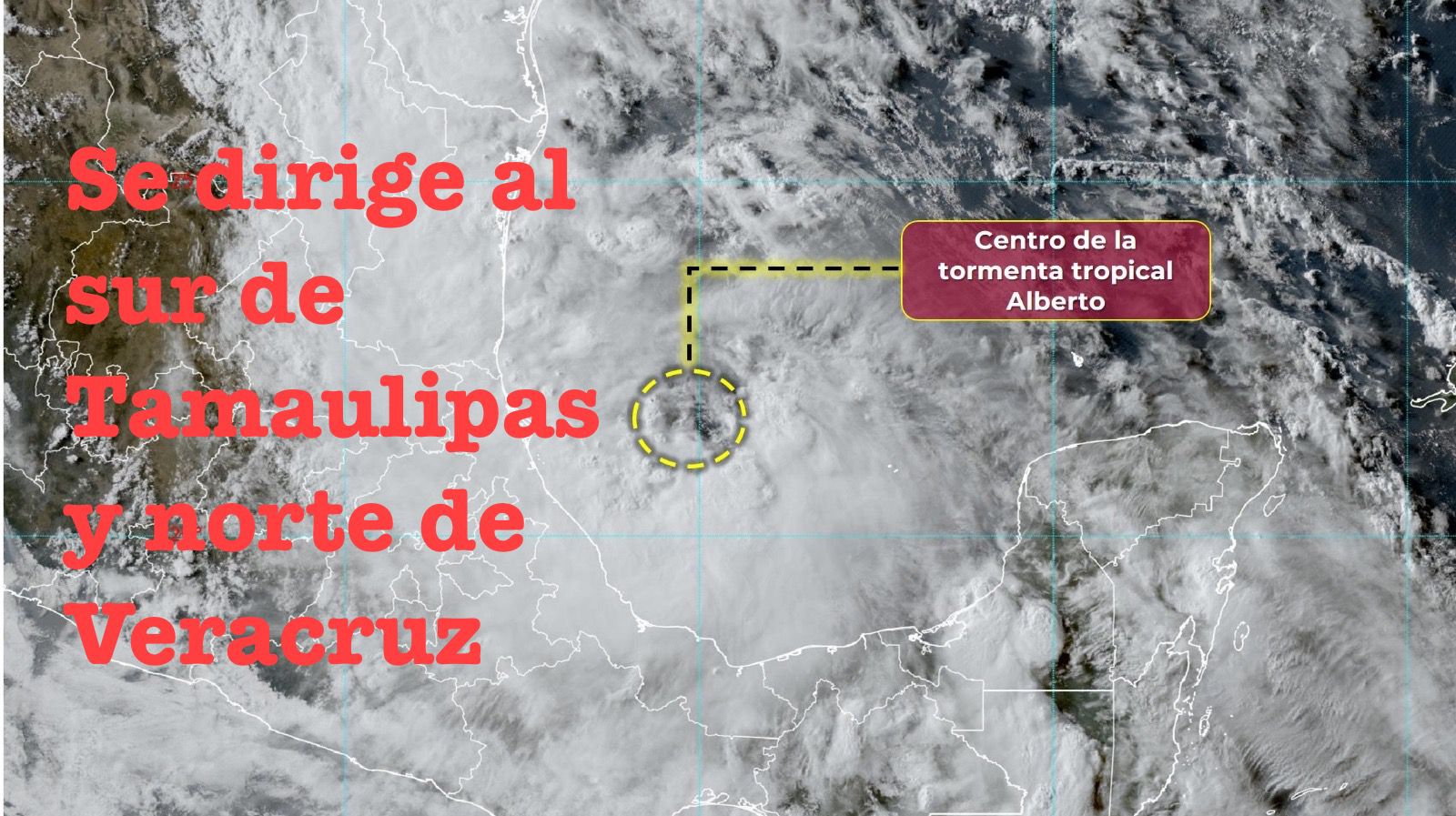 México a 19 de Junio del 2024.-La tormenta tropical Alberto mantiene su desplazamiento hacia las costas de Veracruz y Tamaulipas. Su amplia circulación genera lluvias torrenciales y puntuales extraordinarias en el noreste y oriente del país, así como lluvias muy fuertes a puntuales intensas en el sureste mexicano y la Península de Yucatán, además de chubascos y lluvias fuertes en el centro del territorio nacional. Todas las lluvias podrán estar acompañadas de descargas eléctricas y posible caída de granizo.