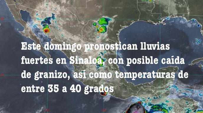 Pacífico Norte: Cielo medio nublado por la mañana y nublado durante la tarde, con lluvias puntuales muy fuertes en Sonora y puntuales fuertes en Sinaloa, con descargas eléctricas y posible caída de granizo en ambas entidades. Ambiente templado por la mañana en la región y ambiente fresco en sierras de Sonora. Por la tarde, dominará ambiente caluroso en Sinaloa y muy caluroso en Sonora. Viento del sur y suroeste de 10 a 25 km/h en la región con rachas de 50 a 60 km/h en Sonora.