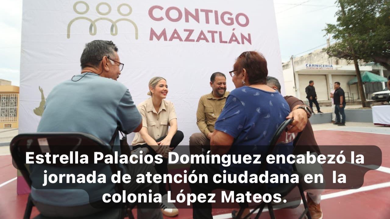 Mazatlán, Sin., 3 dic. 2025.– Con el propósito de reforzar la cercanía entre el Gobierno Municipal y la ciudadanía, la Presidenta Estrella Palacios Domínguez encabezó la jornada de atención ciudadana “Contigo Mazatlán”, realizada la tarde de este miércoles en la cancha de basquetbol de la colonia López Mateos.