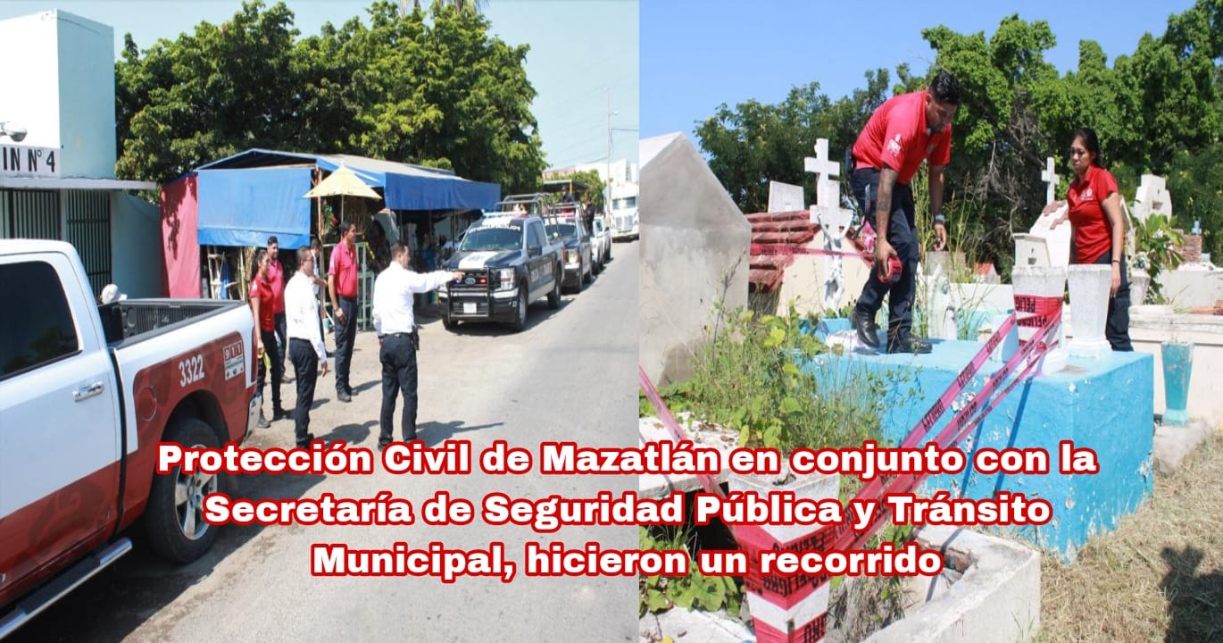 Mazatlán, Sinaloa, octubre 19 del 2022.- Con el fin de verificar el estado en que se encuentran, así como ubicar y atender panales de abejas la Coordinación de Protección Civil en conjunto con la Secretaría de Seguridad Pública y Tránsito Municipal, realizó una verificación a panteones tanto municipales como privados.