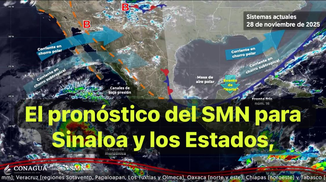 México 28 nov. 2025.-Este día, el frente frío número 16 se extenderá sobre la península de Yucatán y sureste del territorio nacional, propiciará lluvias puntuales intensas en Veracruz (regiones Sotavento, Papaloapan, Los Tuxtlas y Olmeca), Oaxaca (norte y este), Chiapas (noroeste) y Tabasco (oeste), lluvias puntuales muy fuertes en Puebla (Sierra Norte, Sierra Nororiental, Valle Serdán y Tehuacán-Sierra Negra) y Veracruz (regiones Huasteca Alta, Huasteca Baja, Totonaca, Nautla, Capital y Las Montañas), lluvias puntuales fuertes en Hidalgo (regiones Sierra Alta, Huasteca y Sierra de Tenango), Campeche, Yucatán y Quintana Roo.